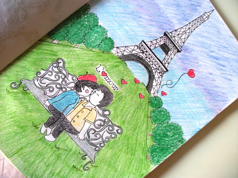 Mesmo na correria tenho que dar umas pausas pra fazer desenho, ouvir uma boa música, ler ou até mesmo assistir um filminho. Então nesse meio tempo, criei um caderninho muito bacana, idéia que tive, de desenhar coisas que farei com meu namorado no futuro, dentre elas saiu essa ilustração que foi a que mais gostei de desenhar: